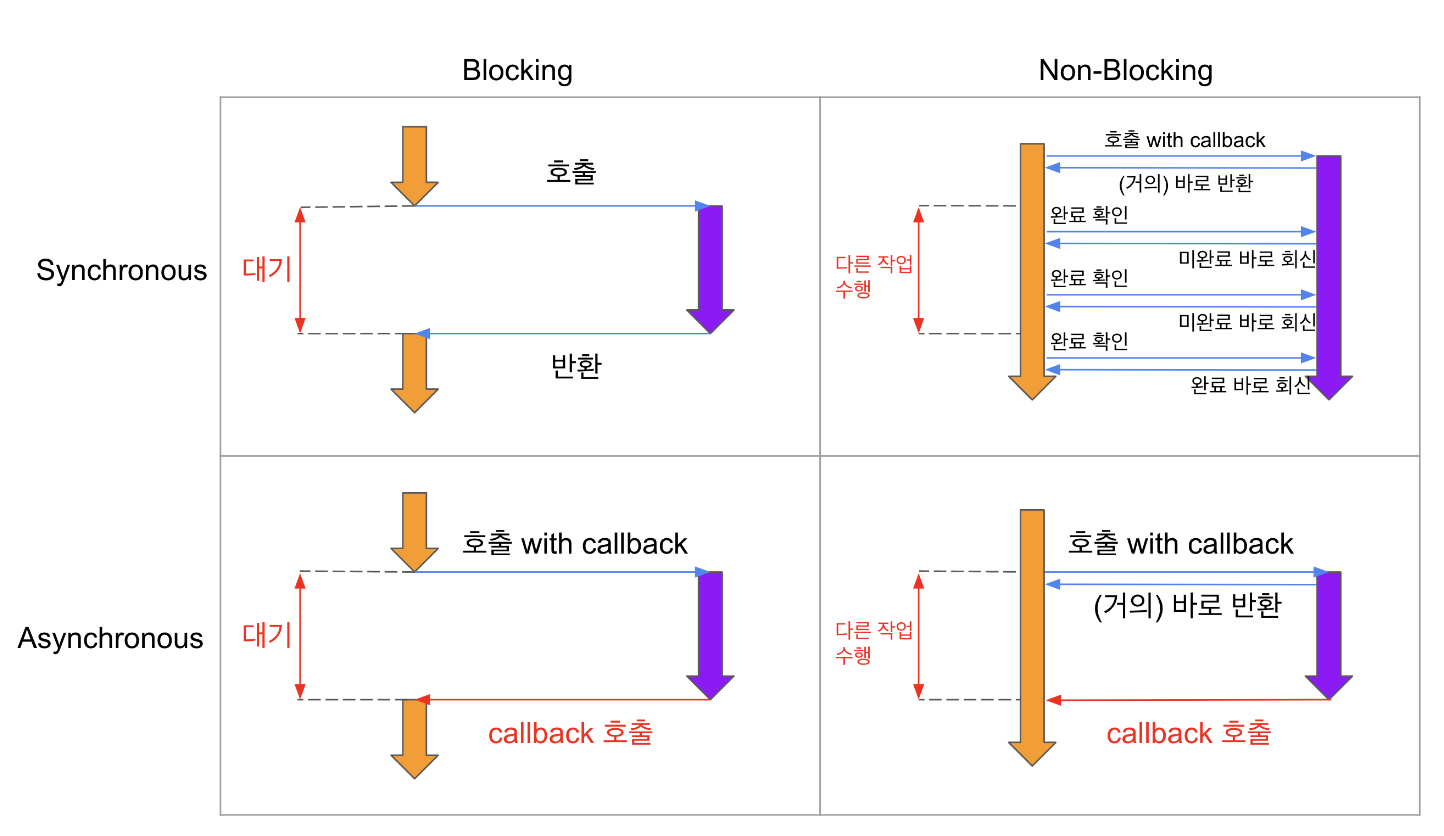 ์ฆ, Blocking / Non-Blockiing / Async / Sync ๋ฅผ ํฌ๋ก์ค์ค๋ฒํ 4๊ฐ์ง์ ์ข ๋ฅ๊ฐ ์๋ค.