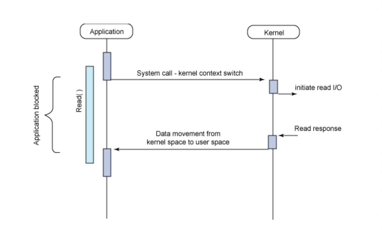 I/O ์์ ์ User๋ ๋ฒจ์์ ์ง์ ์ํํ ์ ์๊ณ , ์ค์ IO ์์ ์ ์ํํ๋ ์์น๋ Kernel(์ปค๋, ์ฆ ์ด์์ฒด์ )์์๋ง ๊ฐ๋ฅํ๋ค. ์ ์ ํ๋ก์ธ์ค (or ์ค๋ ๋)๋ ์ปค๋์๊ฒ ์์ฒญ์ ํ๊ณ ์์ ์๋ฃ ํ ์ปค๋์ ๋ฐํํ๋ ๊ฒฐ๊ณผ๋ฅผ ๊ธฐ๋ค๋ฆด ๋ฟ์ด๋ค.