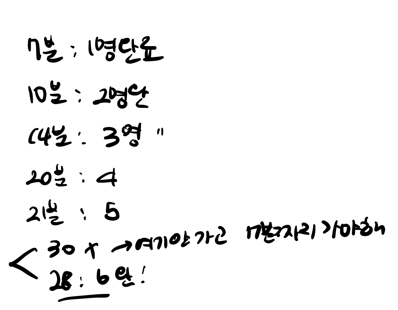 ์ด ๋ฌธ์ ์์ ์์ ๋ฅผ ๋ณด์. ์ด 28๋ถ์ ์๊ฐ๋์, 6๋ช